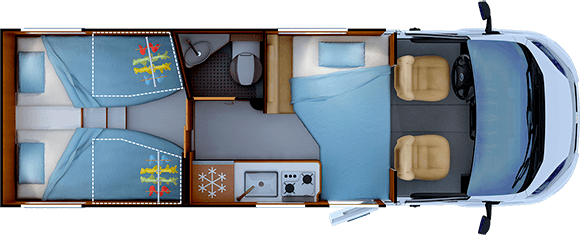 - Twin beds 80 x 199 cm 80 x 185 cm convert into a two berth transverse bed