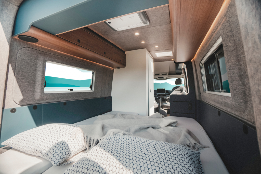 Measuring 200 x 136 cm, the spacious sleeping area at the rear of the vehicle is also big enough for taller people. Combined with disc springs and a mattress topper, the premium mattress creates a cosy, full-length bed that is extremely comfortable to sleep on.